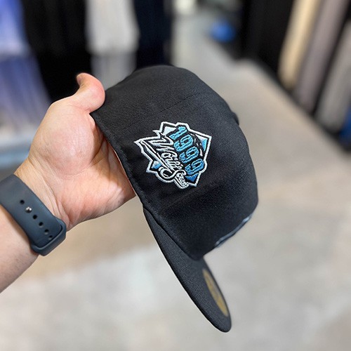 کلاه کپ فیت بک نیو ارا (NEW ERA NY) مشکی جزییات آبی 2 سایز (1/4)7 (57.7 CM)